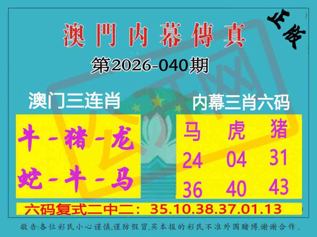 036期(牛17-猪43-虎40-马48-龙14)开牛41准
